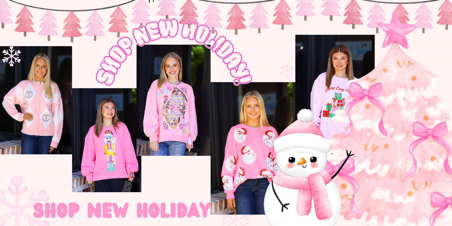 "Merry Every Thing" Embroidered Pink Sweatshirt