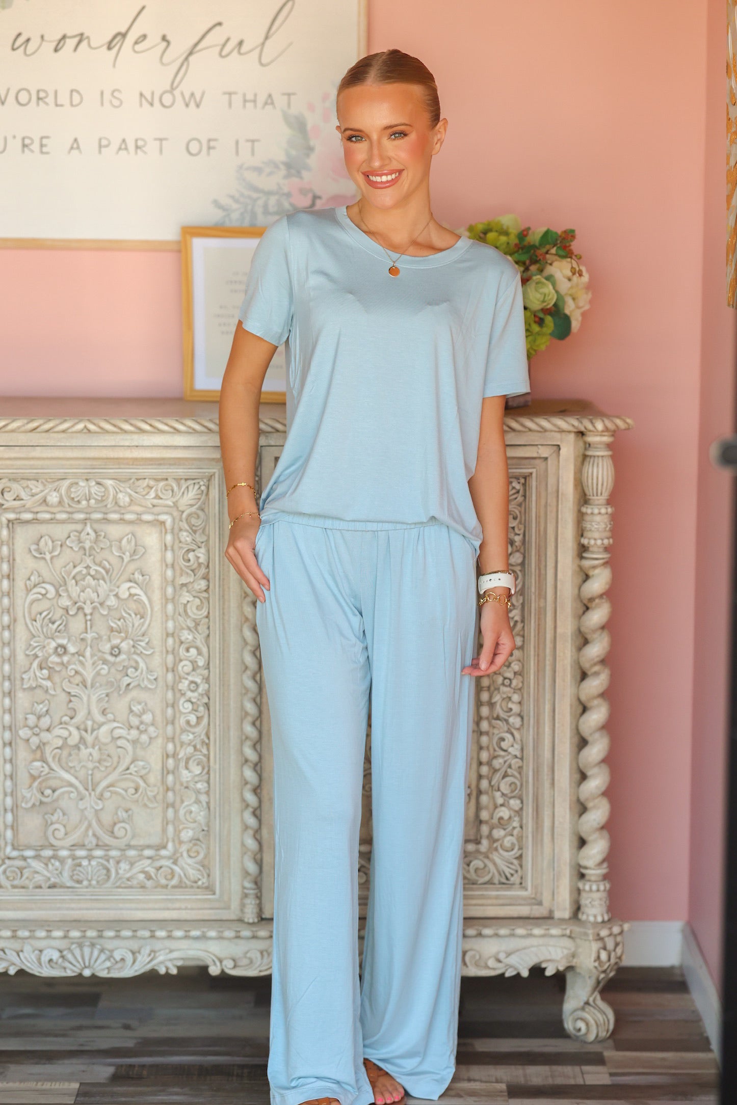 This baby blue top and pant set is the perfect blend of sweet and stylish. The top features a relaxed fit with a soft, breezy fabric and subtle detailing for a feminine touch. The matching pants offer a comfortable high-rise waist and a flowy, straight-leg silhouette that moves effortlessly. Ideal for warm-weather outings or casual chic moments, this set brings a fresh, coordinated look with minimal effort.