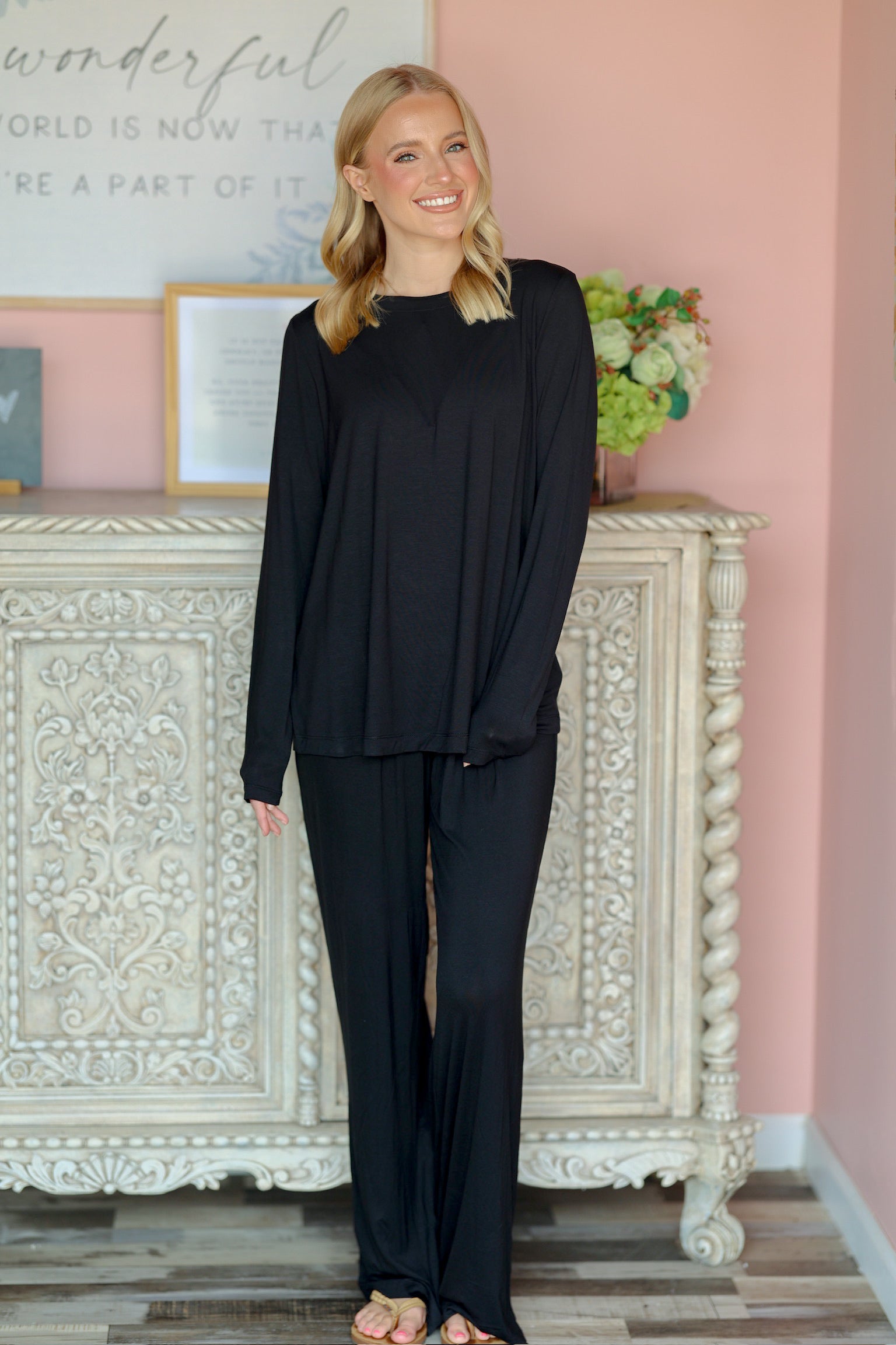 These black wide-leg flowy pants are the perfect blend of comfort and sophistication. Designed with a high-rise fit and a breezy silhouette, they drape effortlessly for a chic, elongated look. The lightweight fabric adds movement and elegance, making them easy to dress up with heels and a blouse or keep casual with a tee and sneakers. A timeless wardrobe staple for any occasion.
