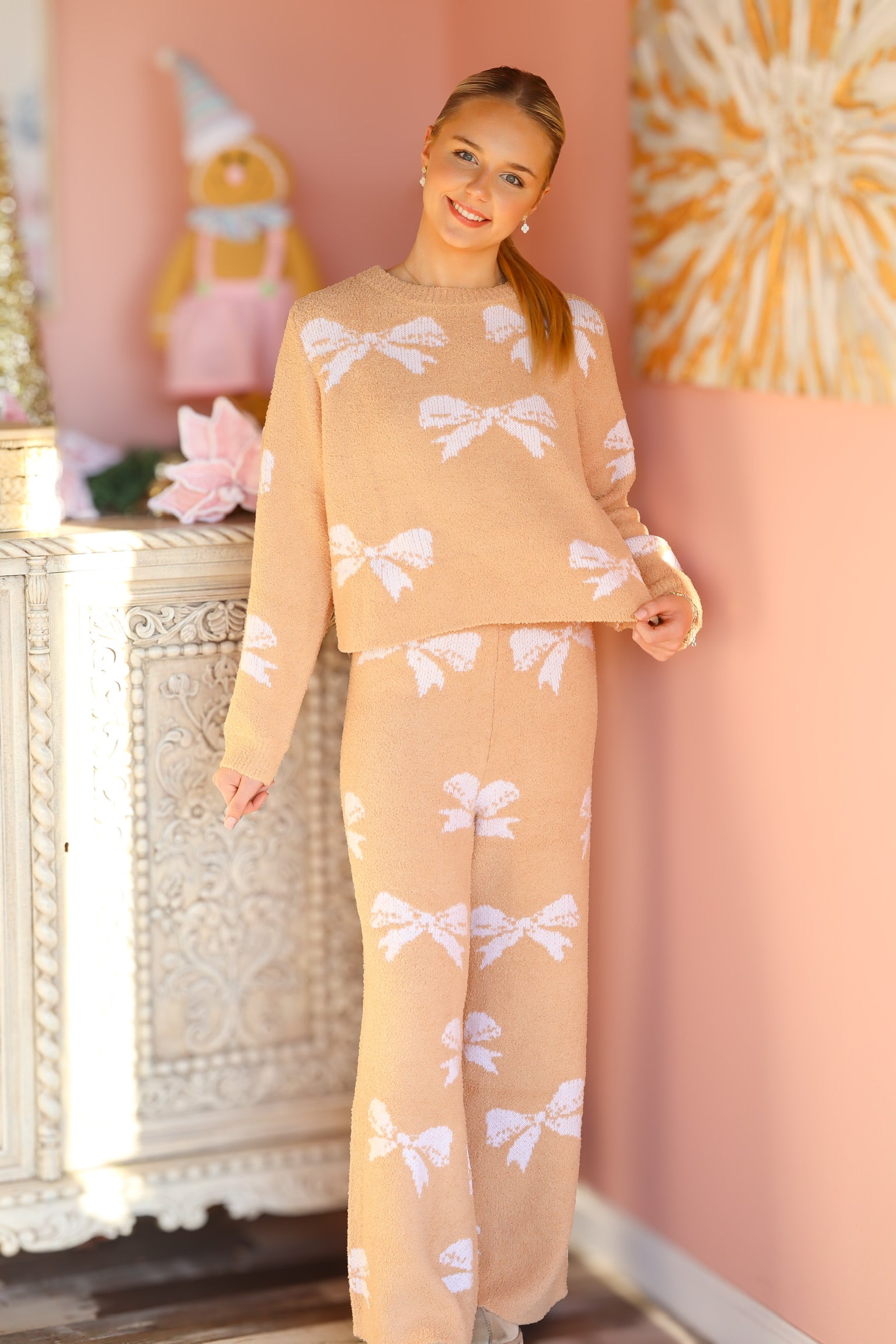 Sweet, feminine, and effortlessly cozy — the Bow Sweater Set is the perfect blend of charm and comfort. This matching set features a soft knit sweater adorned with delicate bow detailing, paired with coordinating bottoms for a cute, put-together look. The relaxed fit makes it ideal for lounging, holiday events, or casual outings, while the bow accents bring a playful, girly touch. Whether you're dressing it up with boots or keeping it comfy at home, this set is an instant favorite for anyone who loves a stylish, coordinated vibe.