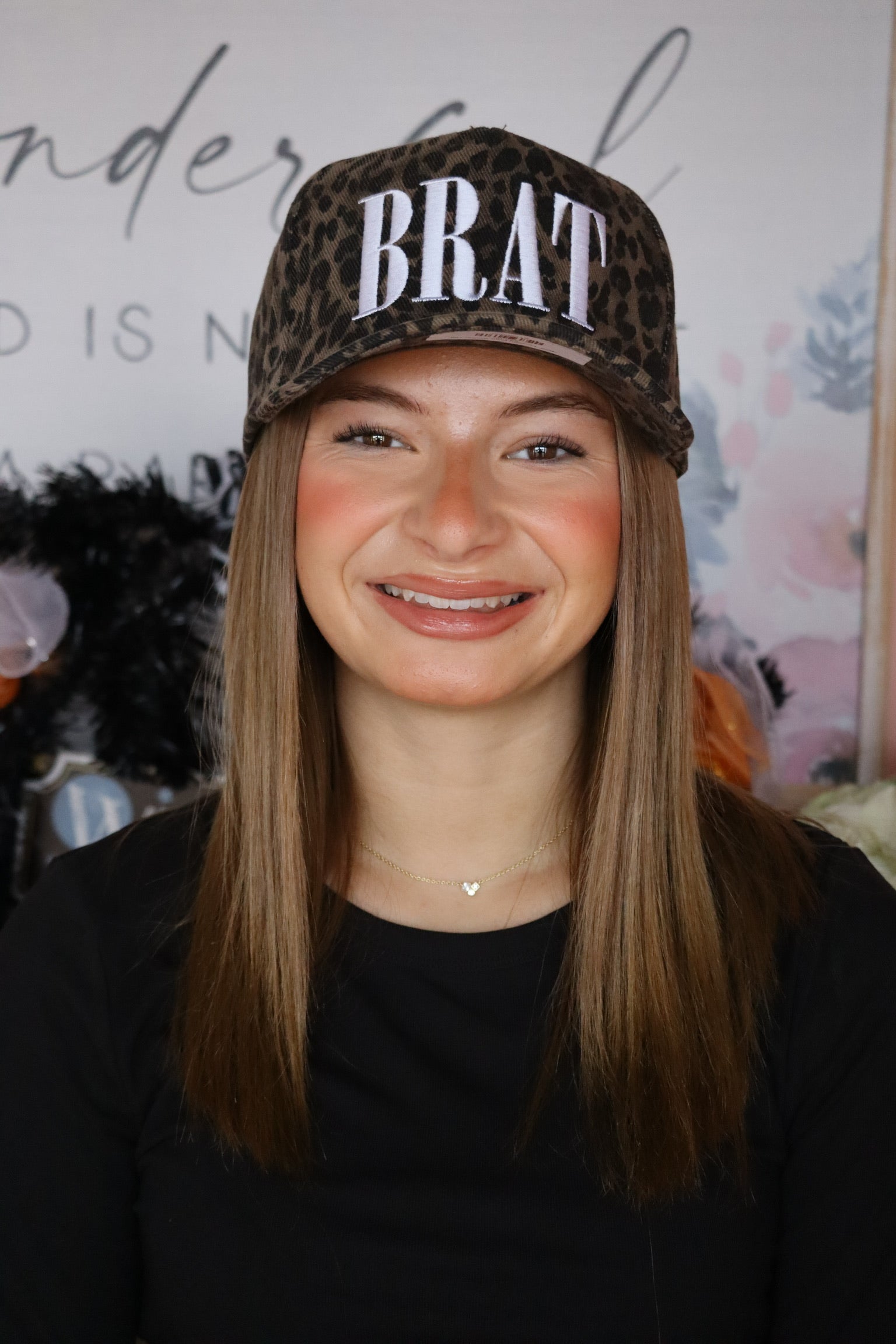 Unleash your wild side with the Brat leopard print hat. Featuring bold embroidered lettering across a fierce leopard pattern, this hat blends attitude with playful style. Perfect for making a statement, it’s the ultimate accessory for anyone who loves a little edge and a lot of personality.