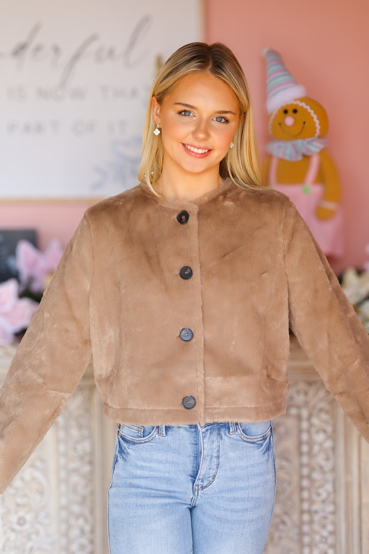 Cozy, chic, and effortlessly elevated — this brown fur cropped jacket is the statement layer your winter wardrobe needs. Designed with plush faux fur that feels luxuriously soft, it features a flattering cropped silhouette and a classic button-up front for easy styling. Wear it open for a relaxed vibe or buttoned for a polished, cold-weather look. Perfect for holiday outfits, nights out, or adding a touch of glam to your everyday denim.