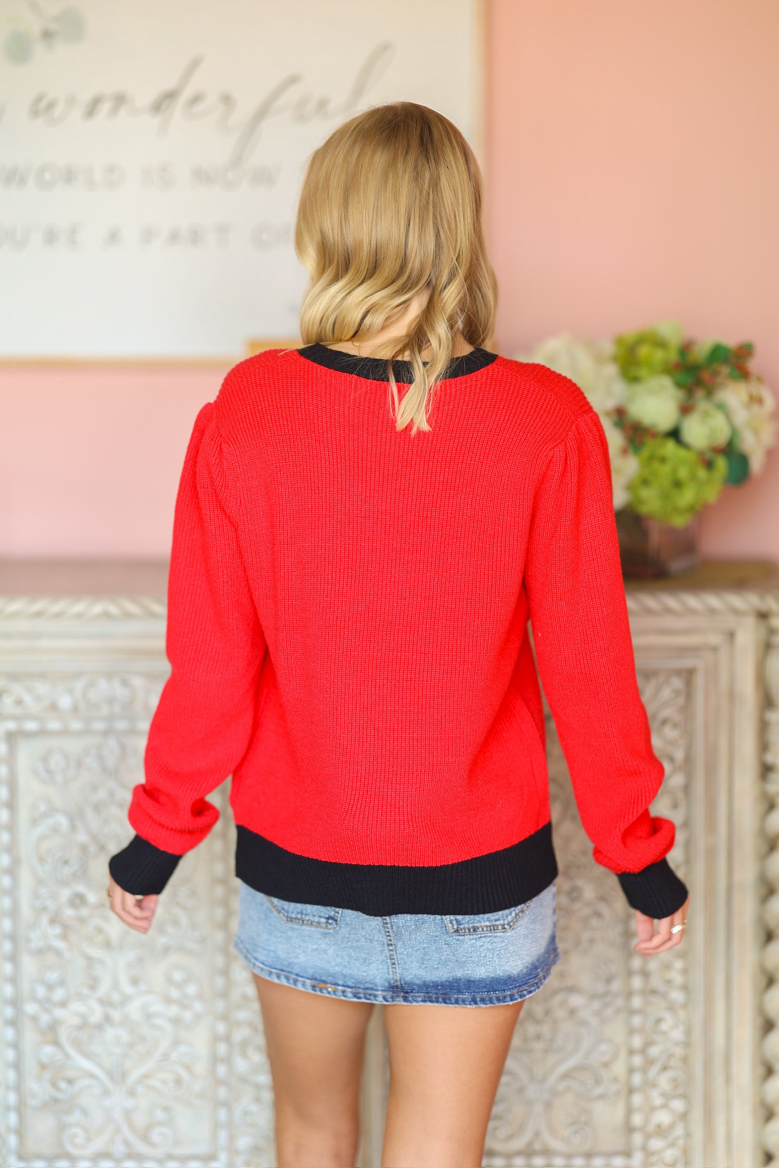 This bulldog red and black sweater showcases a bold color-block design with a fierce bulldog graphic front and center. Crafted from soft, cozy knit fabric, it features a relaxed fit and ribbed trim for added comfort. Perfect for game days or casual wear, it adds a spirited touch to any outfit.