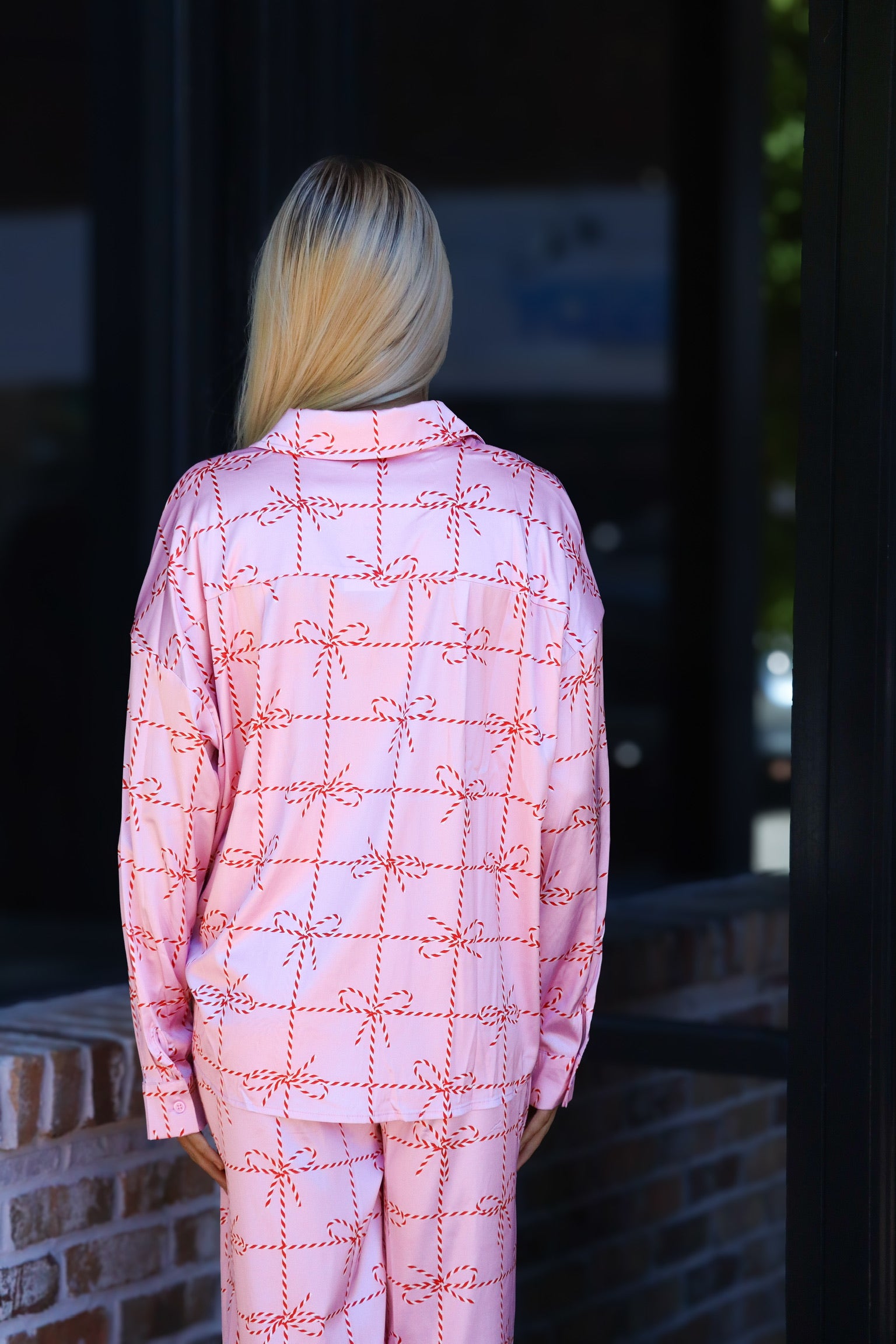 Get wrapped up in holiday luxury with the Christmas Bows Pink Satin PJ Set! This adorable pajama set features a silky satin finish in a soft pink hue, adorned with festive bow prints that add a perfectly girly touch. The button-up top and matching drawstring shorts or pants (depending on the style) offer a relaxed, comfy fit while keeping things chic and cozy. Ideal for Christmas morning, movie nights, or festive sleepovers—these PJs are as sweet and stylish as the season itself!