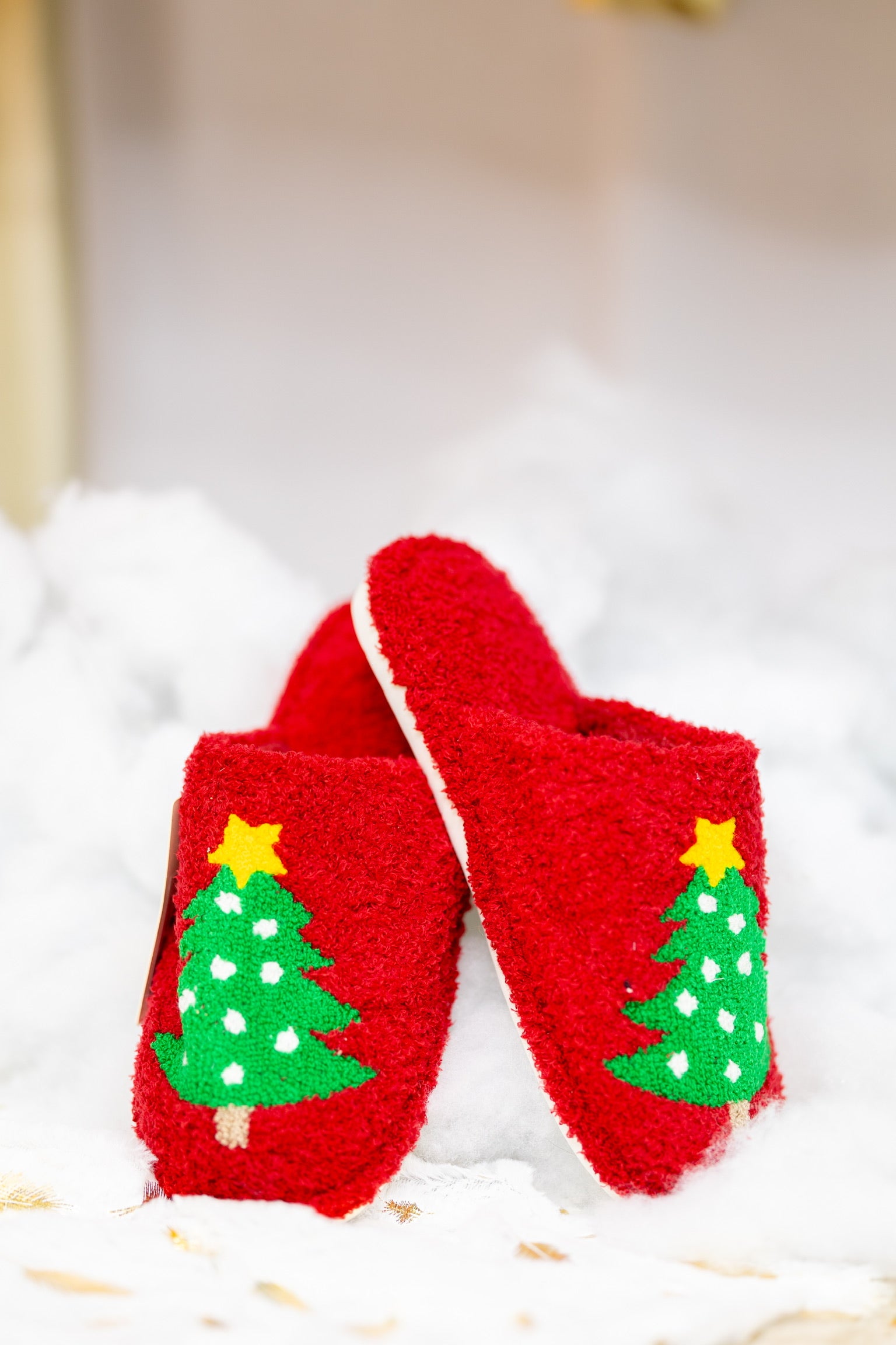 These cozy red Sherpa slippers are adorned with a festive Christmas tree on the front, adding a cheerful touch to your holiday loungewear. The plush Sherpa lining wraps your feet in warmth, while the cushioned sole ensures a soft and comfy step with every stride. Perfect for relaxing by the fire or adding some holiday spirit to your mornings, these slippers are a must-have for the season.