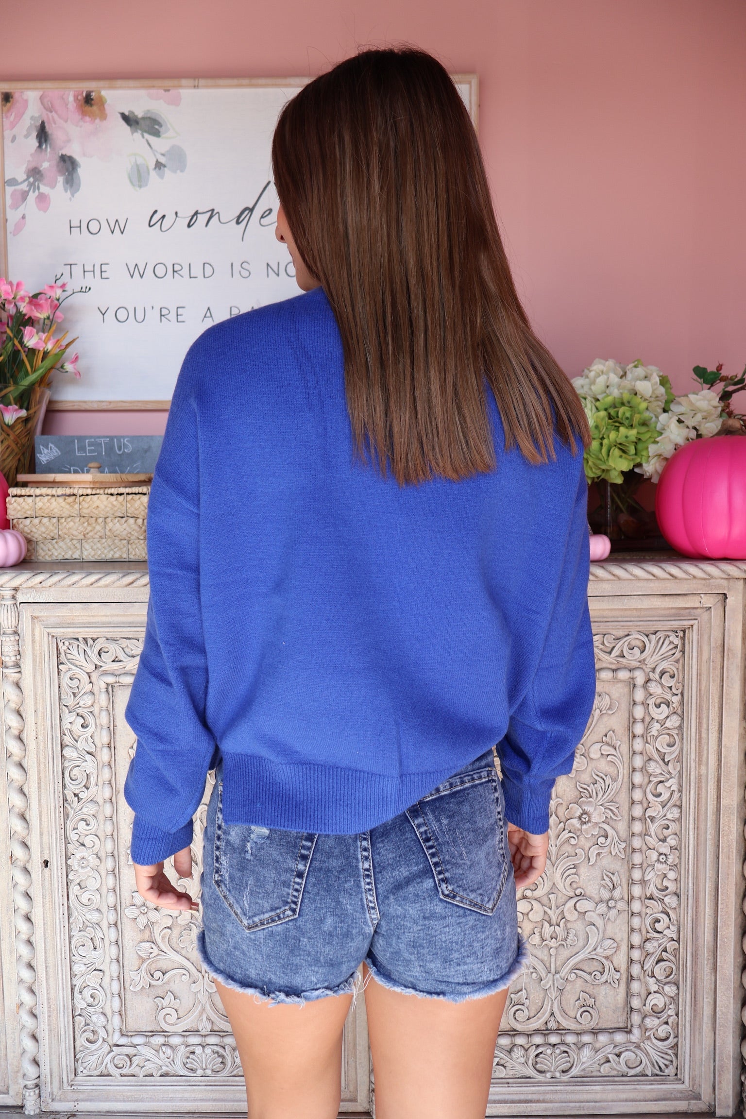 This cobalt blue sweater adds a bold pop of color to your wardrobe with its rich, vibrant hue. Crafted from a soft, cozy knit, it offers all-day comfort while maintaining a polished look. The classic fit makes it easy to style—pair it with jeans for a casual day out or layer it over a collared shirt for a more refined touch. Perfect for transitioning through the seasons, this sweater combines timeless style with standout color.