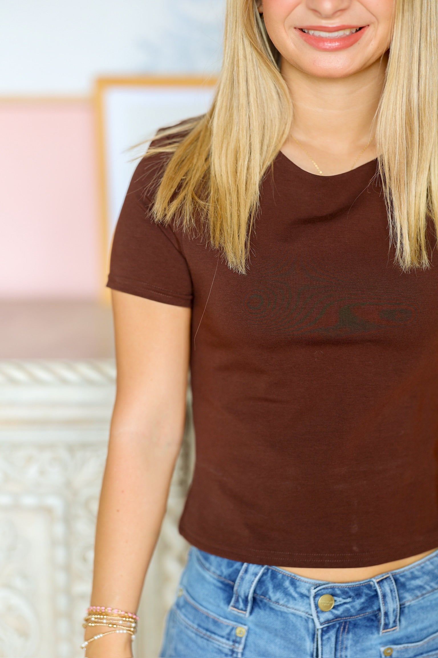This brown top is a timeless wardrobe essential with a versatile, everyday appeal. Designed in a rich neutral shade, it pairs effortlessly with both casual and dressy looks. The soft, breathable fabric ensures all-day comfort, while the flattering cut makes it easy to style tucked in or left relaxed. A classic piece you’ll reach for season after season.