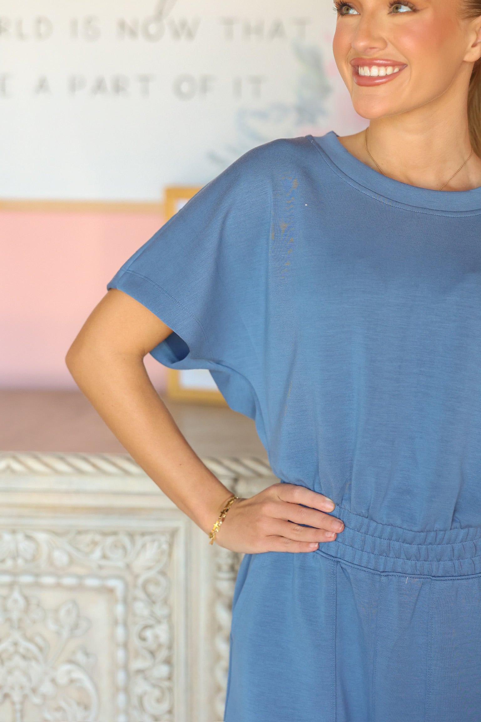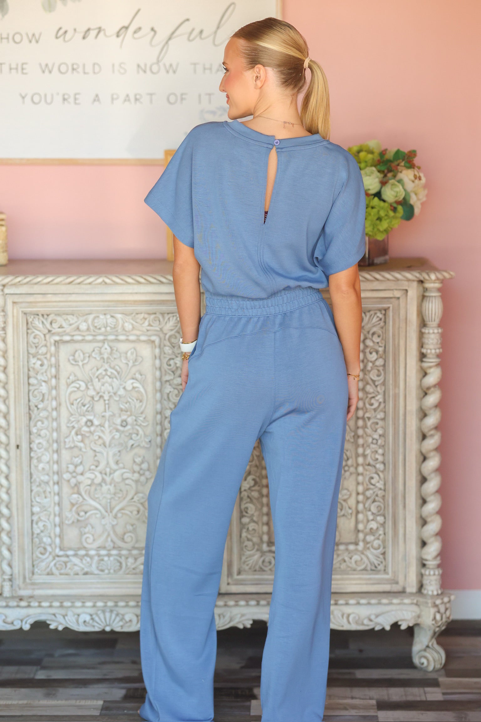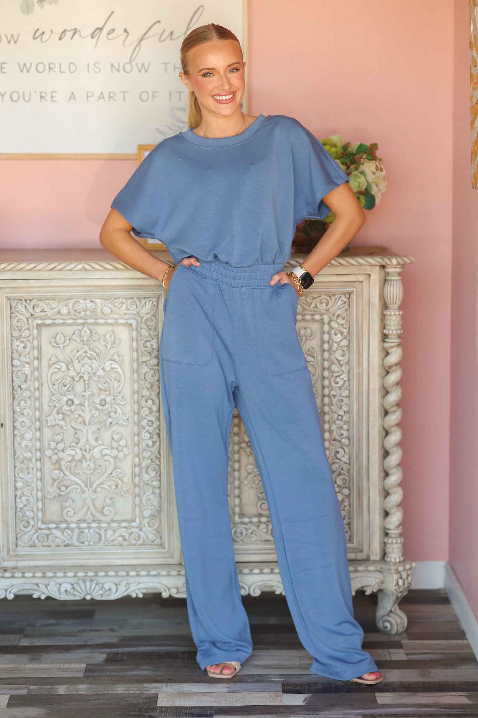This dusty blue jumpsuit exudes effortless elegance with a modern twist. Designed with a flattering cinched waist and wide-leg silhouette, it elongates the figure while offering all-day comfort. Perfect for brunch, special events, or a night out, this one-piece makes styling easy and sophisticated.