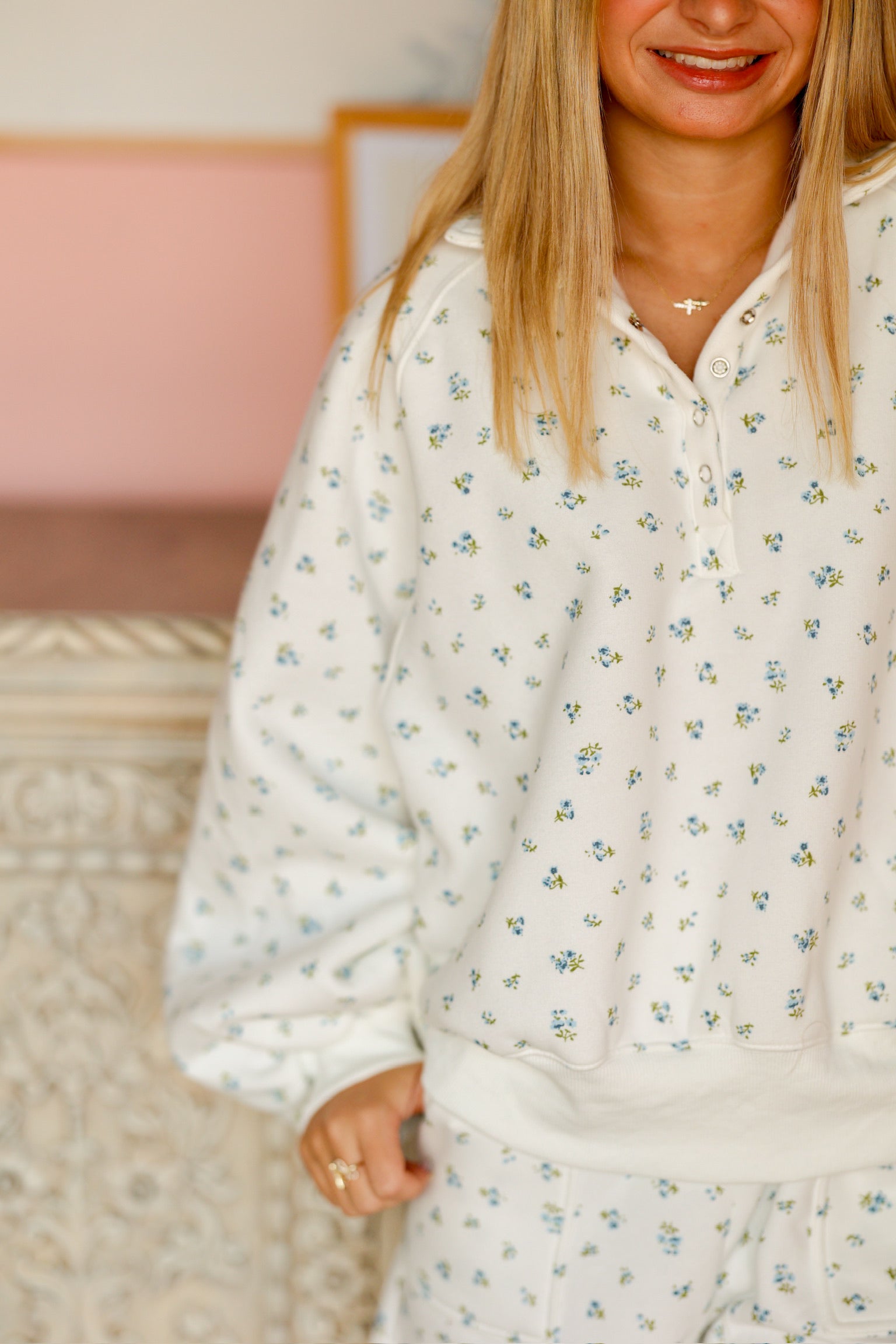 A cozy yet stylish essential, this floral quarter button-up pullover blends comfort with charm. Featuring a relaxed fit and soft fabric, it’s detailed with a quarter-button front for an easy, laid-back look. The floral print adds a touch of femininity, making it perfect for casual days, weekend outings, or layering through the seasons