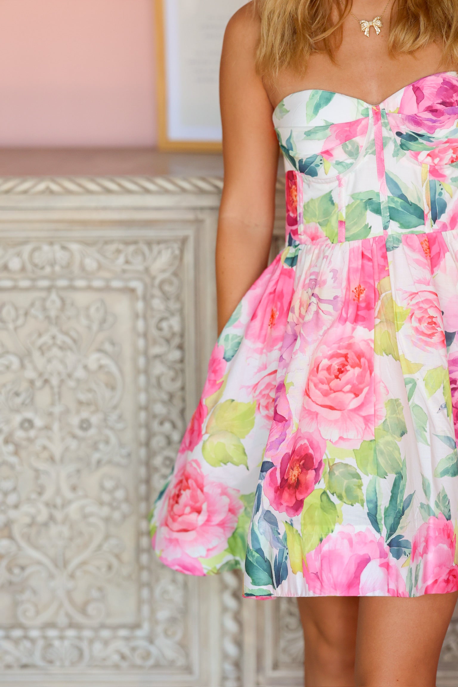 This flower garden mini dress is a sweet and feminine piece bursting with charm. Featuring an allover floral print in soft, vibrant hues, it captures the essence of a blooming garden. The dress has a flattering, fitted bodice with a flared skirt that adds playful movement. Delicate details like ruffled straps, a smocked back, or a subtle sweetheart neckline enhance its romantic feel. Light and airy, it’s perfect for sunny days, garden parties, or a weekend brunch.