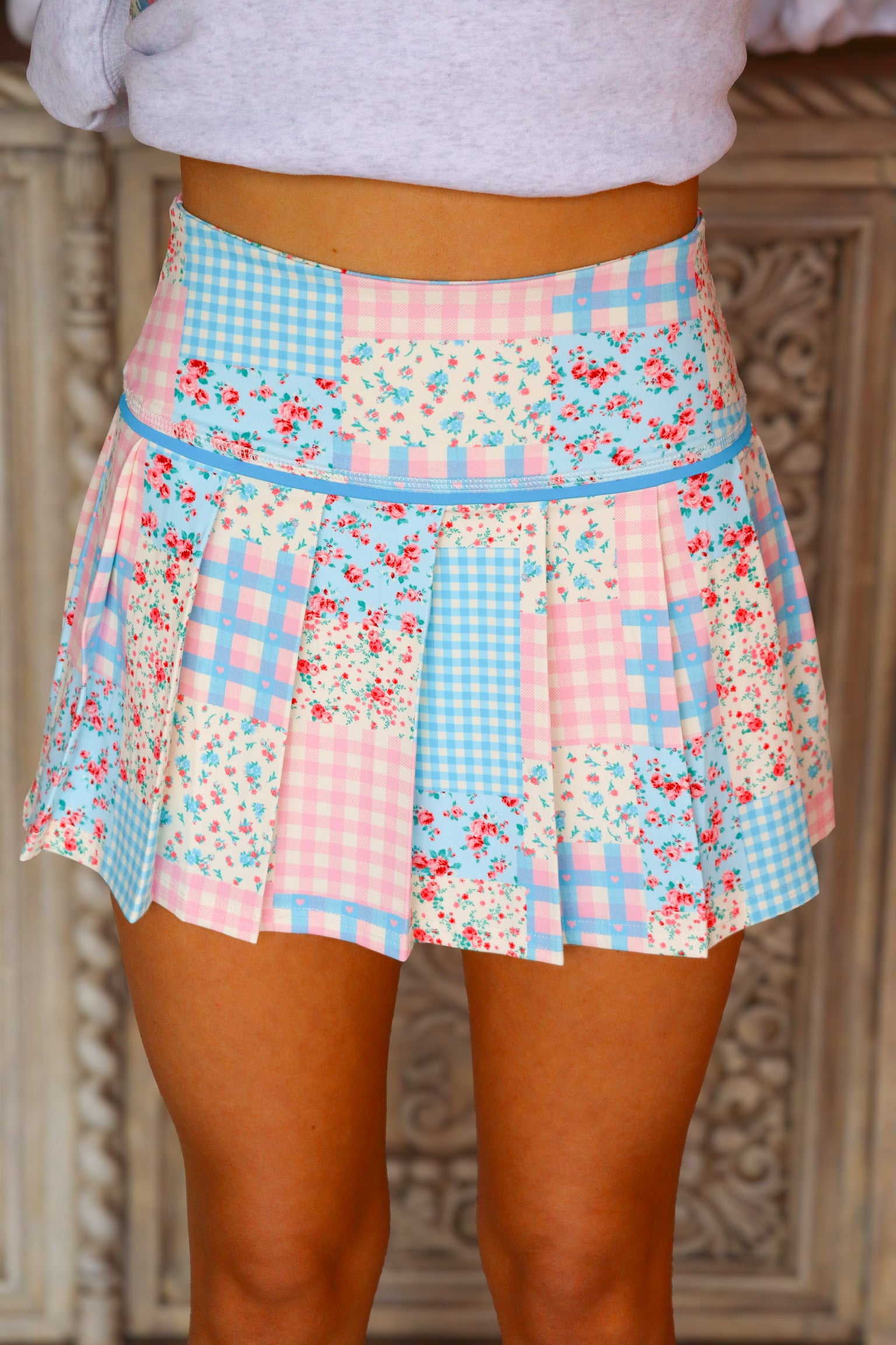 Add a playful twist to your look with the Gingham & Floral Patchwork Skort. Featuring a charming mix of classic gingham and feminine floral prints, this standout piece blends sweet style with everyday comfort. Designed with a flattering skirt-front and built-in shorts for easy wear, it’s perfect for days when you want a fun, carefree outfit without sacrificing movement. Pair it with a simple tee or sweater for an effortlessly cute look.