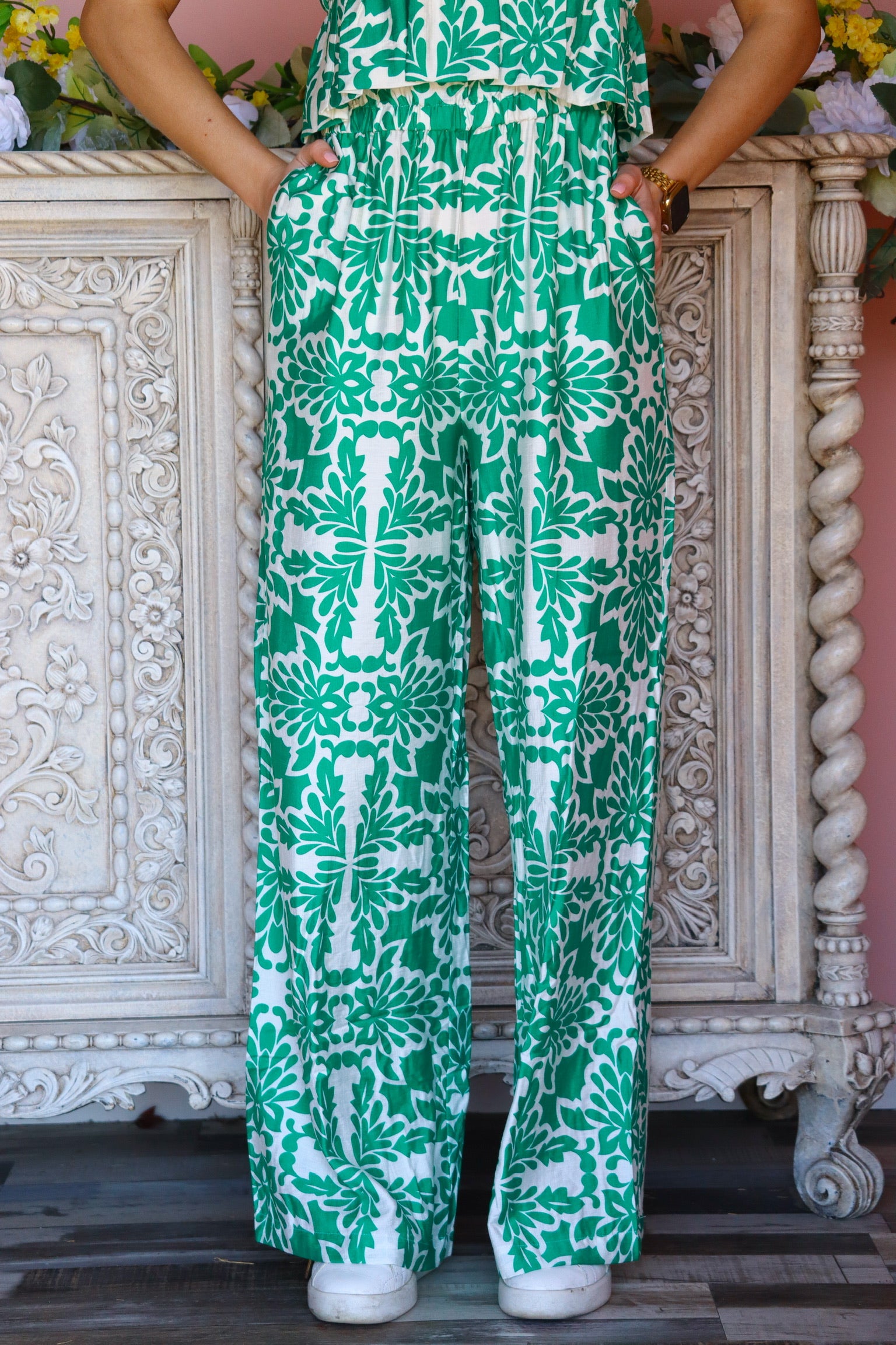 Green and Ivory Jumpsuit