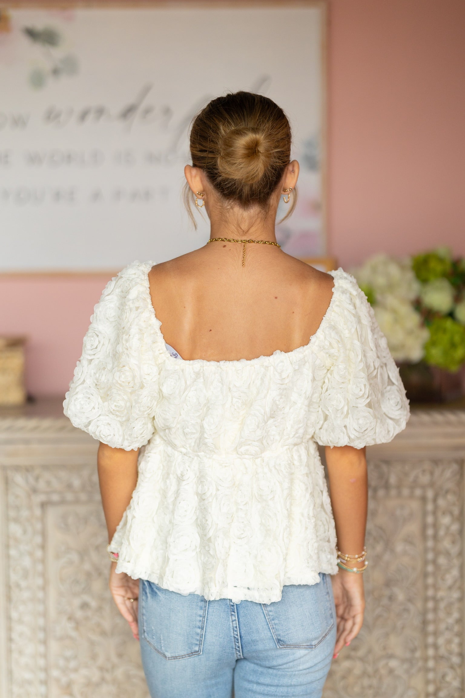 Ivory Floral Puff Top
