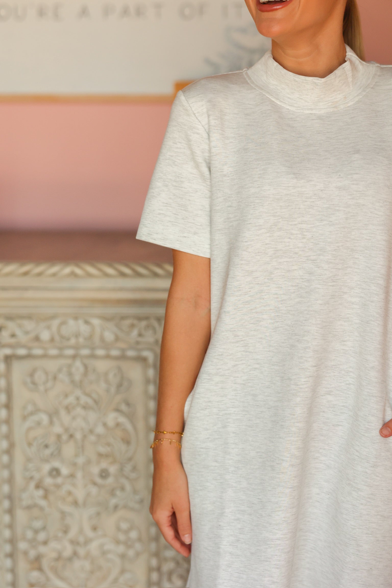 This light grey mini dress is effortlessly chic with a soft, understated charm. Designed with a flattering silhouette, it features a fitted bodice and a gently flared skirt for a feminine touch. The light grey hue adds a modern, versatile edge, perfect for both daytime outings and casual evenings. Comfortable yet stylish, this mini dress is an easy go-to for any occasion.