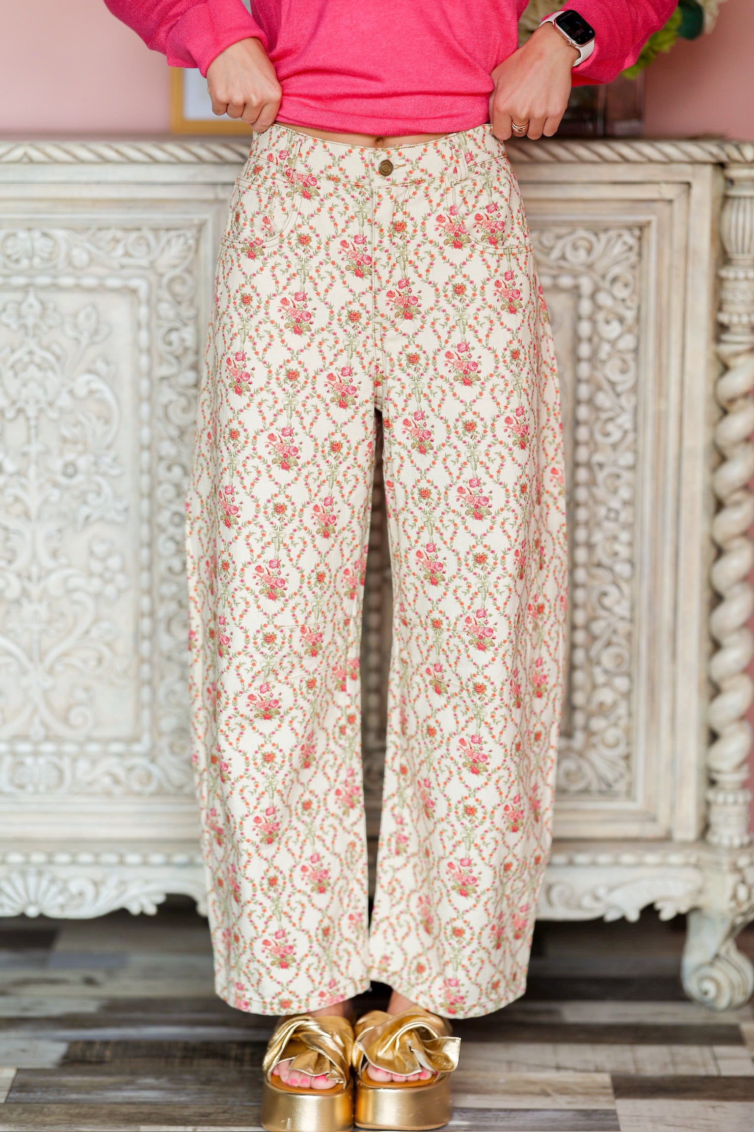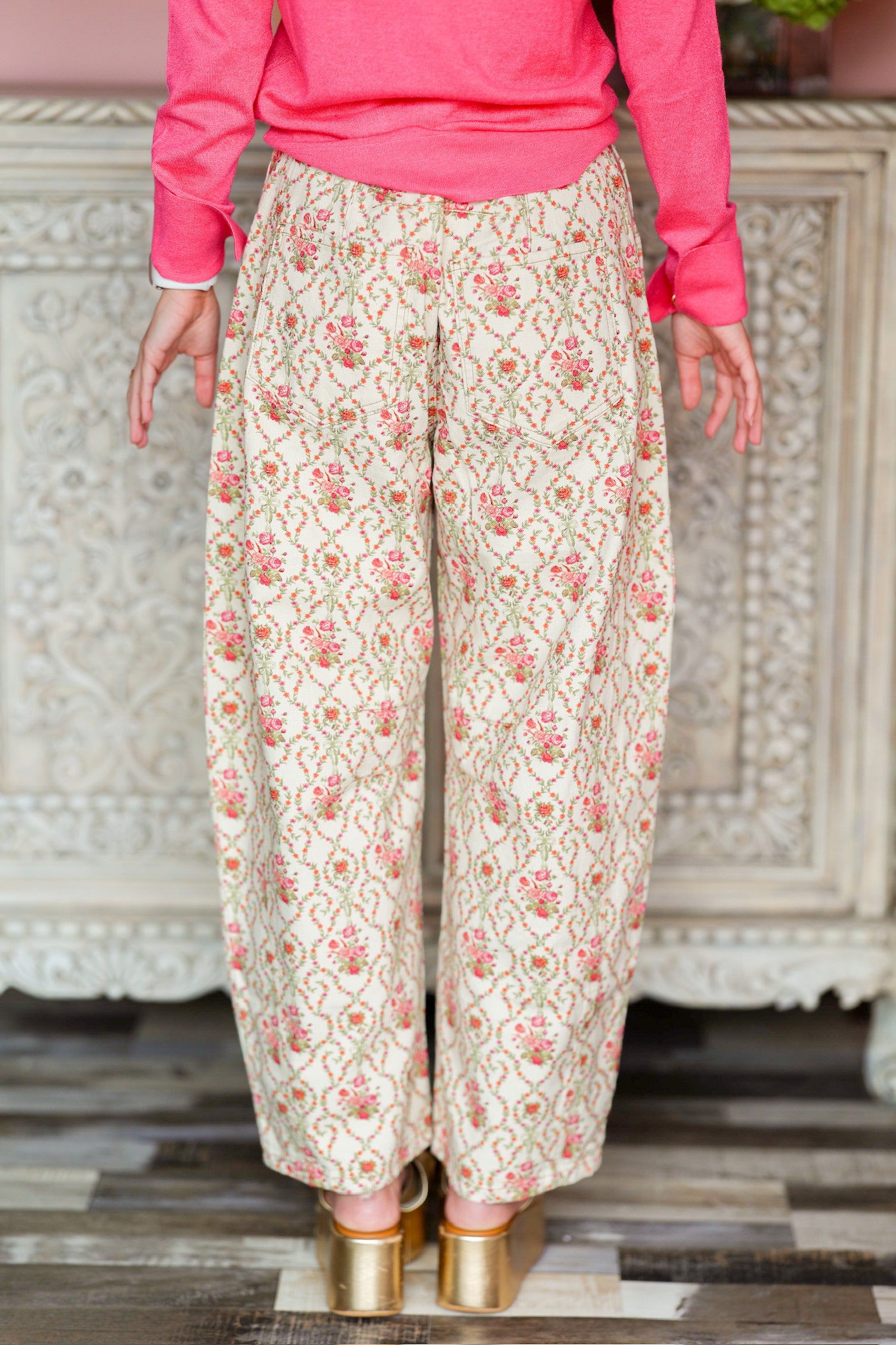 Make a bold style statement with these multi-color floral jeans. Featuring a vibrant floral print across a classic denim base, they blend playful charm with everyday wearability. The flattering fit and sturdy denim fabric ensure both comfort and durability, while the colorful design adds a fun, standout touch to any outfit. Perfect for pairing with simple tops to let the jeans shine.