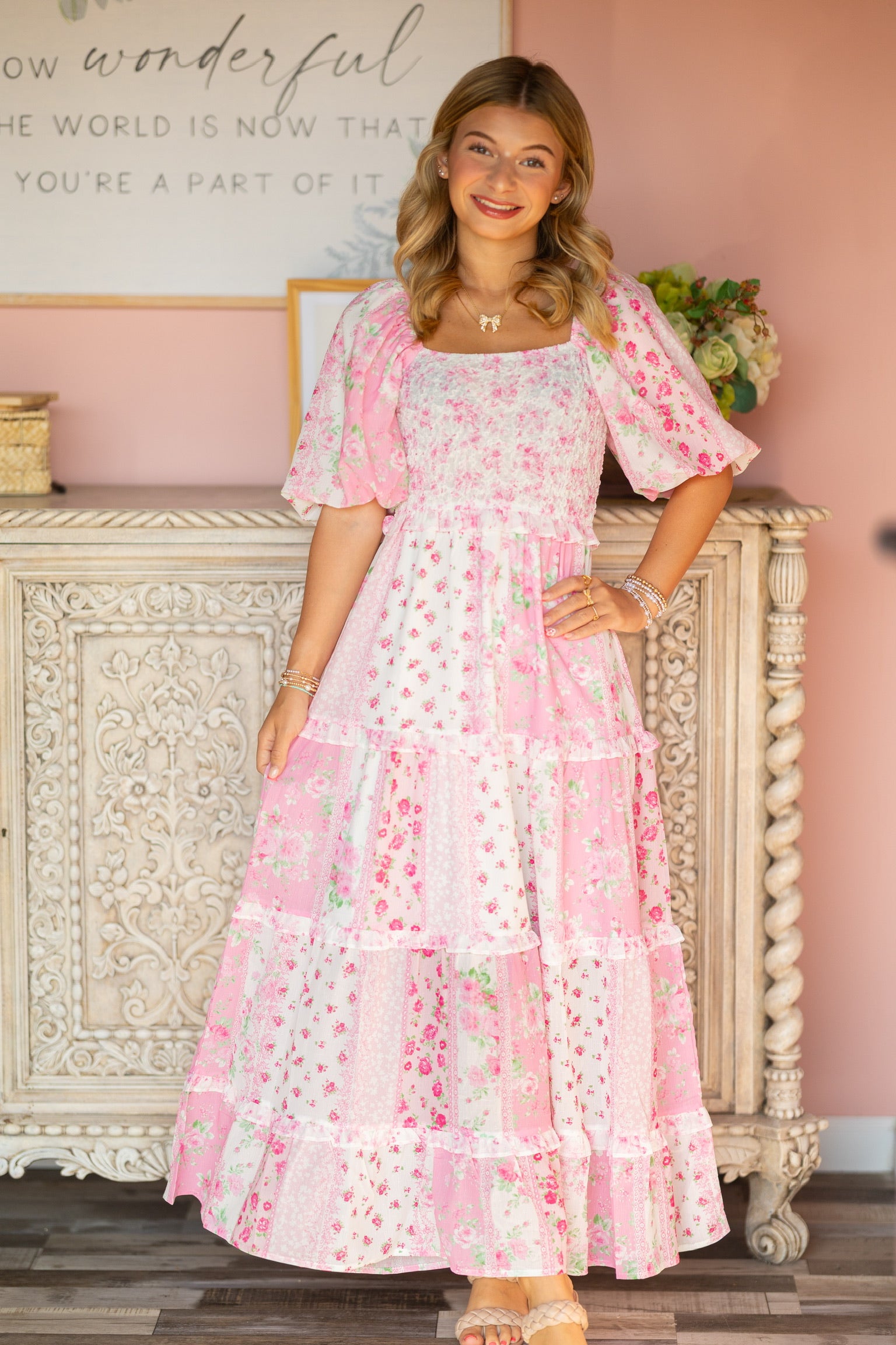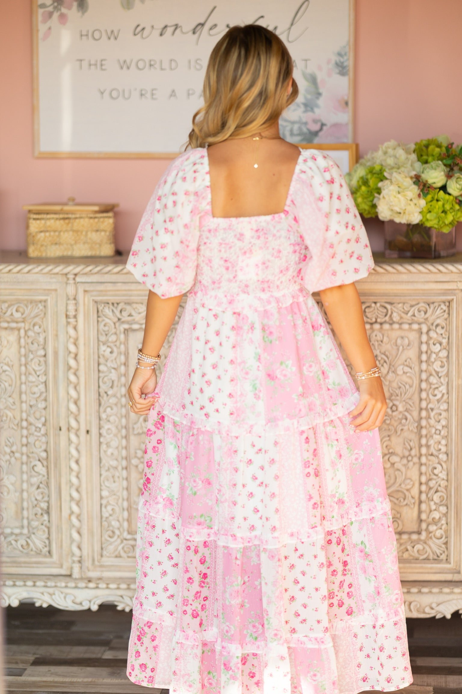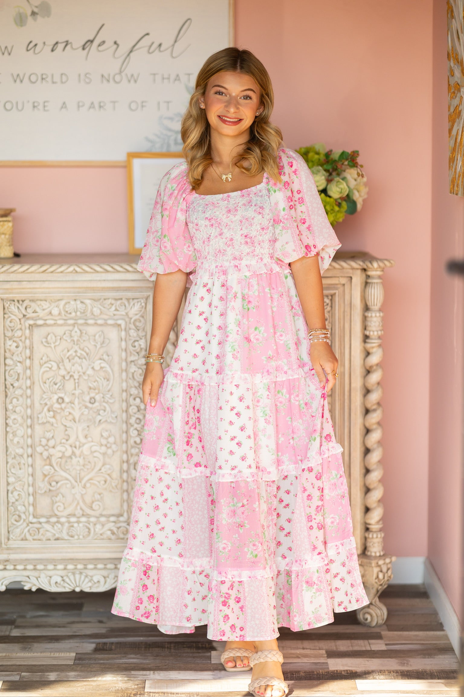 Soft, flowy, and full of charm—the Pink Floral Patchwork Maxi Dress is a boho dream come to life. Featuring a mix of delicate floral prints in a patchwork design, this maxi blends vintage-inspired style with effortless elegance. The tiered skirt adds movement and grace, while the soft pink palette keeps things sweet and feminine. Perfect for picnics, weekend markets, or barefoot beach strolls, it’s the kind of dress that feels like sunshine and nostalgia all at once.