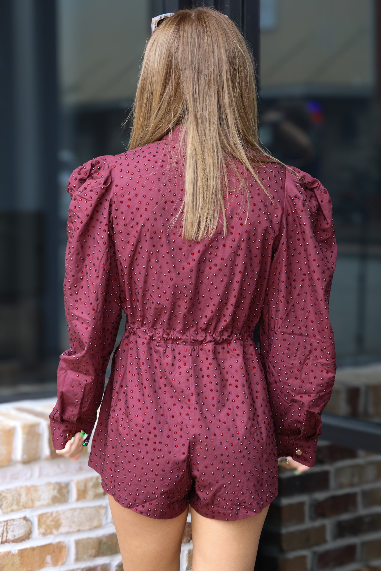 Effortlessly sleek and endlessly comfortable, the QOS Maroon Long Sleeve Romper is your one-and-done outfit for day or night. Made from soft, stretchy fabric with a flattering, curve-hugging fit, this romper features a rich maroon tone, long sleeves, and a defined waist for a streamlined silhouette. Whether you're lounging, layering, or heading out, this piece combines comfort and confidence with minimal effort. Just add boots or sneakers and go.