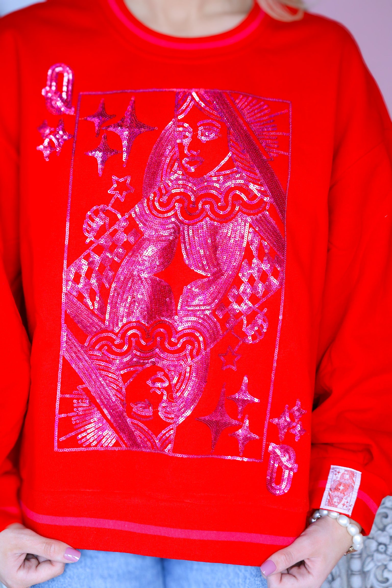 Make a bold statement in the QOS Pink & Red Logo Card Sweatshirt, featuring vibrant pink and red color blocking with the signature Queen of Sparkles logo card detail. Designed with a relaxed, cozy fit, this sweatshirt is perfect for layering or wearing on its own. Pair it with jeans, leggings, or joggers for a playful, sporty-chic look that stands out.