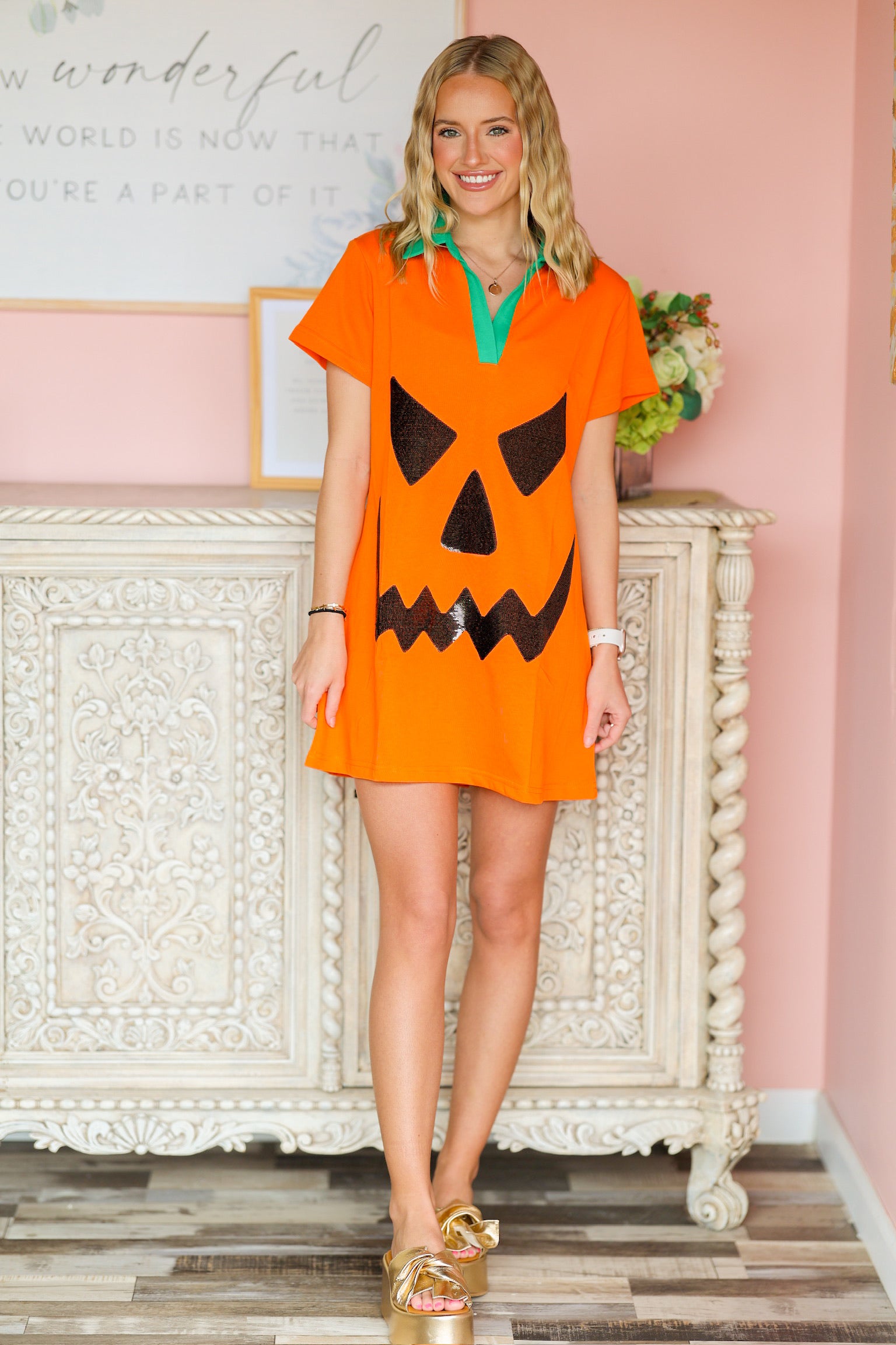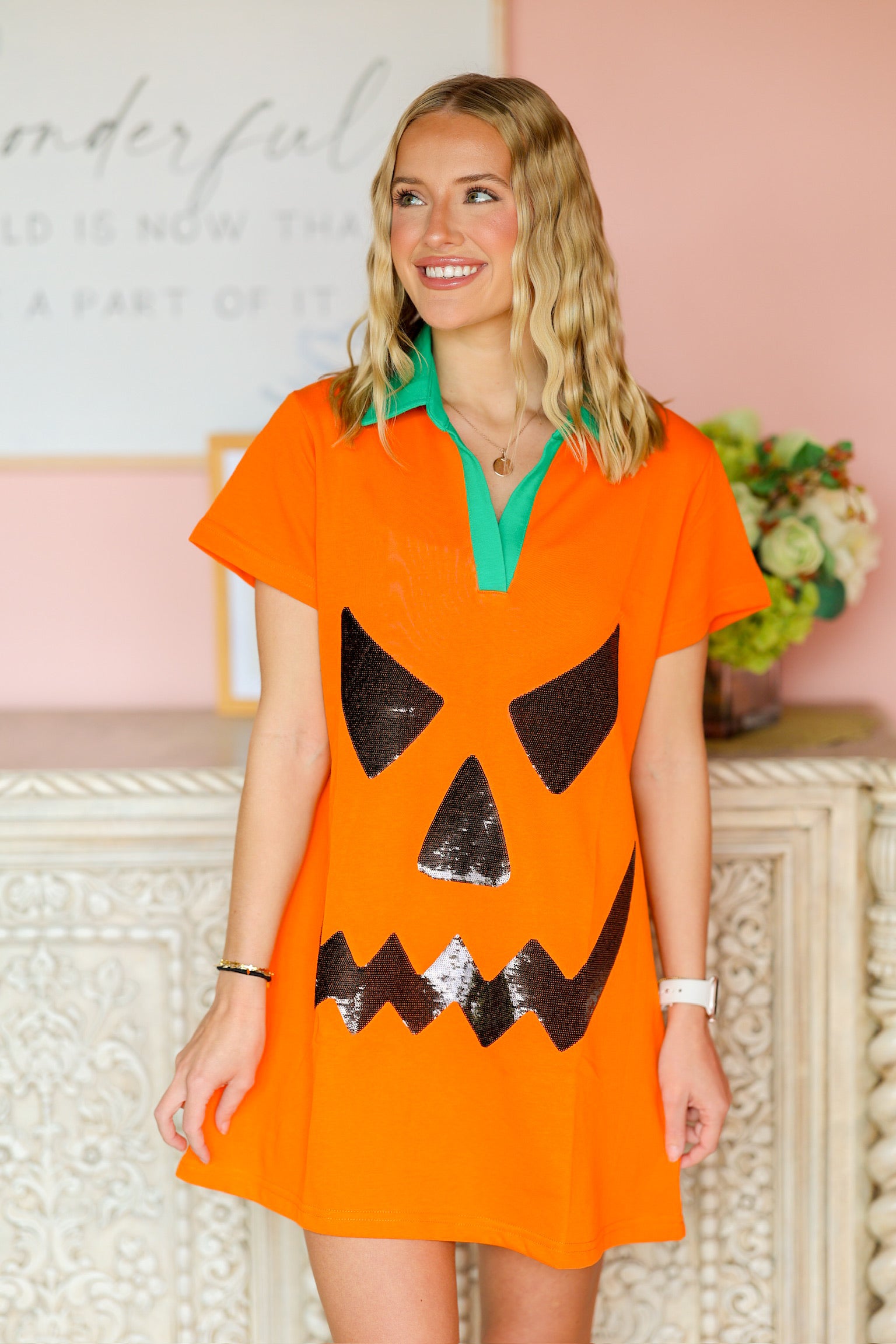 Turn heads this season in the QOS Pumpkin Dress, a festive statement piece with playful fall flair. Featuring sparkling sequin pumpkin designs, this dress combines comfort with eye-catching detail. The relaxed fit and soft fabric make it perfect for game days, pumpkin patch outings, or holiday gatherings. Fun, festive, and effortlessly chic, it’s the ultimate dress for embracing autumn in style.