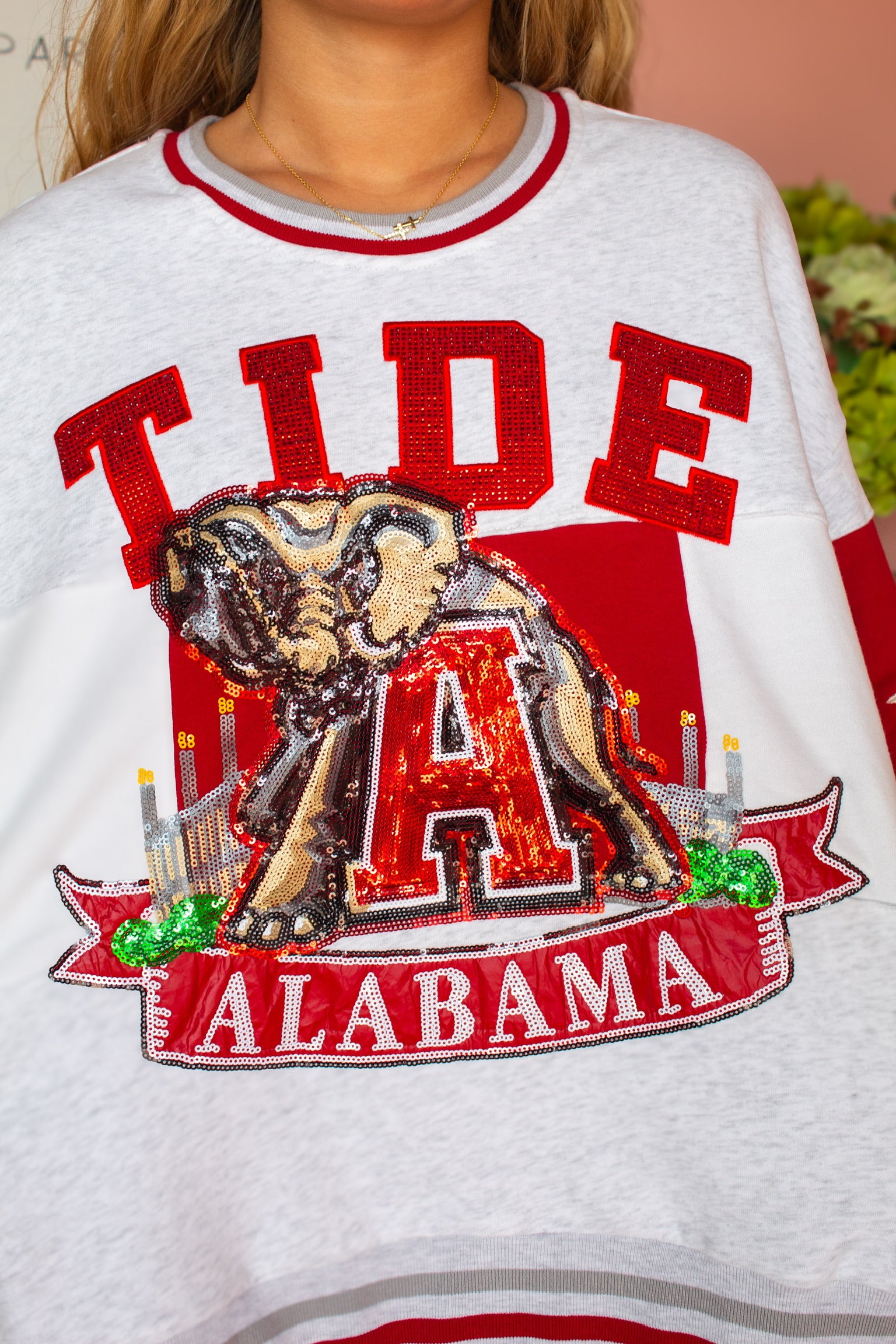 Celebrate your Crimson Tide spirit with this standout Queen of Sparkles sweatshirt. Featuring bold “Tide” lettering with signature sparkle detailing, it’s the perfect blend of cozy and glam. Ideal for game days, tailgates, or casual outings, this piece keeps you stylish while showing off your team pride.