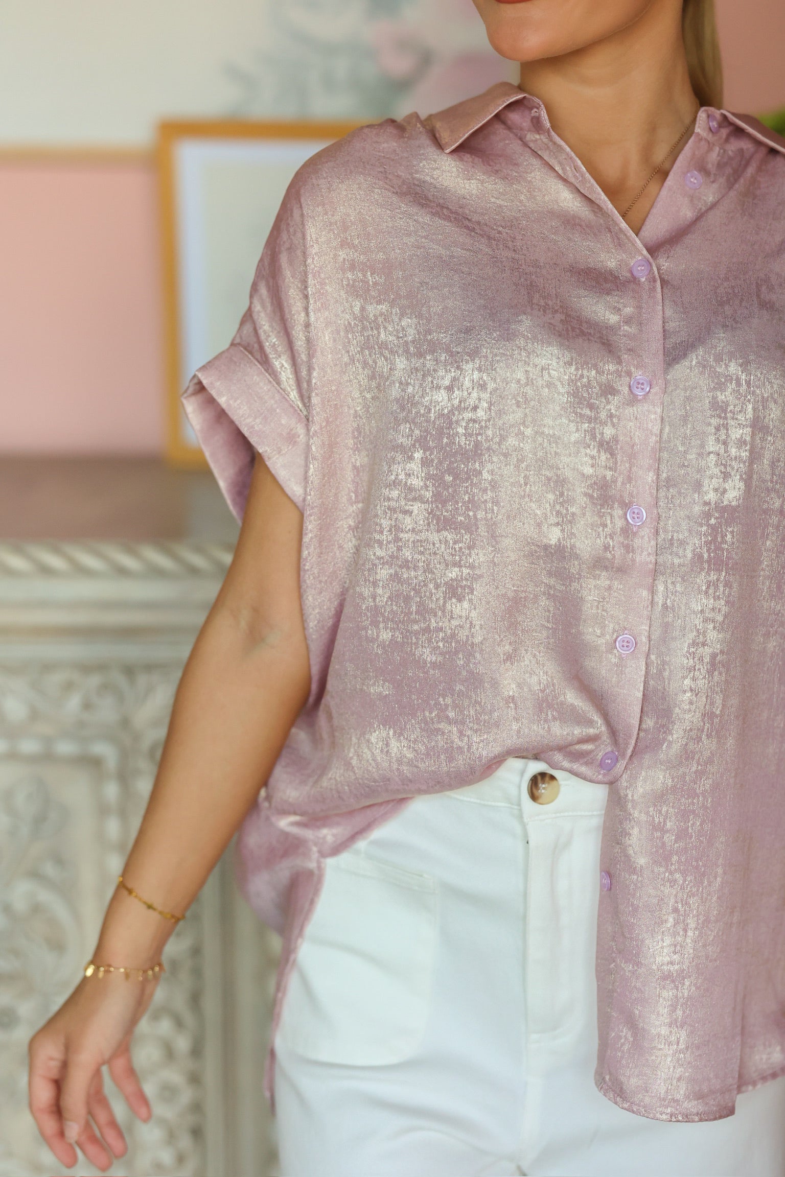 This rose gold shimmer top exudes glamor and elegance with its radiant metallic finish. Crafted from a lightweight, subtly stretchy fabric, it catches the light beautifully, creating a soft, luminous glow in every movement. The rose gold hue adds a romantic, modern twist, while details like a draped neckline, flutter sleeves, or a sleek fitted cut elevate its chic appeal. Perfect for parties, nights out, or festive occasions, this top pairs effortlessly with black trousers, skirts, or dark denim for a standout look.