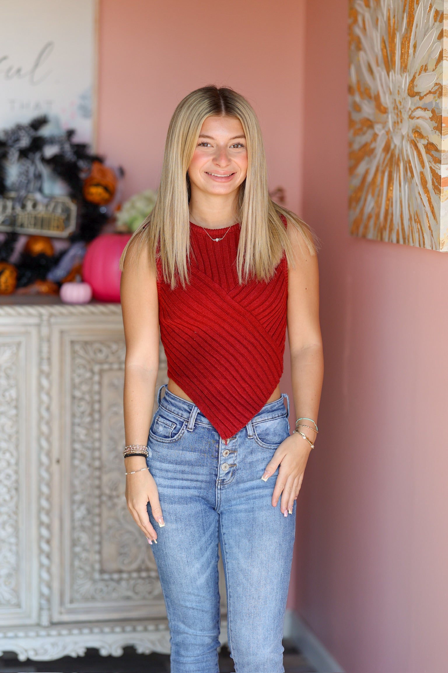 Elevate your wardrobe with this Ruby Red Knit Sweater Tank — a perfect balance of vibrant color and cozy texture. Crafted in a soft, medium-gauge sweater knit, it features a sleeveless cut and a refined crew neckline that flatters without feeling restrictive. The fiery ruby hue brings energy and warmth to any outfit, making it versatile for both bold daytime looks and chic evening layers. With just the right amount of stretch and a close-but-comfortable fit, this tank transitions effortlessly between seasons, whether worn under a blazer, alone with jeans, or layered with cardigans for added dimension.